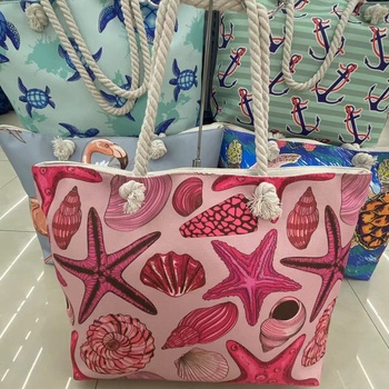 स्पॉट थोक सनी मुद्रित समुद्र भाला ढोना बैग स्टाइलिश बहामा उच्च मात्रा कपास रस्सी समुद्र तट बैग