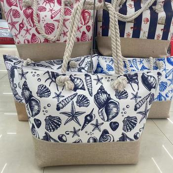 Spot Wholesale Linen Printed Sea Spear Tote Bag Stylish Bahamas High Volume Cotton Rope Beach Bag