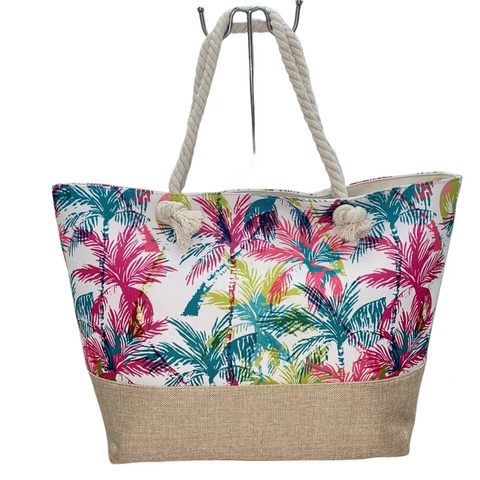 Spot commercio all'ingrosso di lino stampato mare lancia tote bag alla moda Bahamas ad alto volume corda di cotone borsa da spiaggia